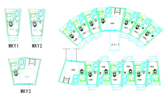 室内外灯(センサー付)・手荷物棚・セパレート便器・小便器・紙巻器・鏡