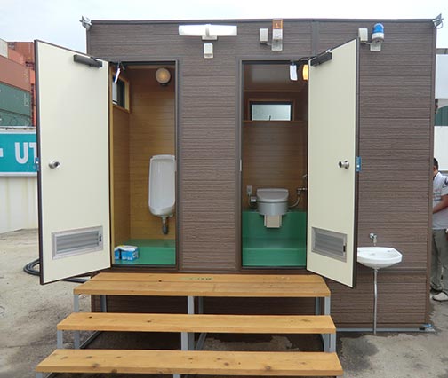 マレーシア 某会社 名称 マレーシア某会社 場所 マレーシア 型式 MDBR-PK2B-L型 1基 オプション 重量センサーシステムし尿分離システム雨水手洗装置セパレート便器尿タンク200Lハイブリッド発電 コメント マレーシア某会社の広大な敷地内に設置しました。