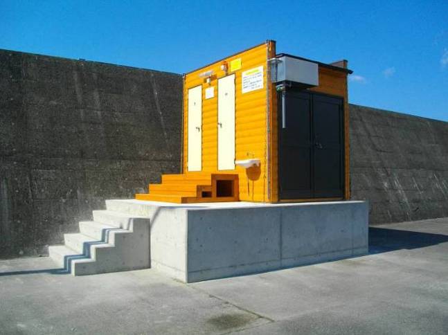 東京都八丈島 八重根漁港 名称 八重根漁港 場所 東京都八丈島 型式 MDBR-MK4H-M型 オプション 重量センサーシステムし尿分離システム雨水手洗装置尿タンク200L コメント 海を見渡せる漁港の一角に設置しました。ダイバーや釣り客でにぎわっています。